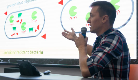 Мировые пандемии, стремительное развитие биотехнологий приводят к появлению у людей новых фобий. Правда ли, что уже появились «супер-микробы», устойчивые ко всем известным антибиотикам? Стоит ли бояться высокоточного биологического оружия? На эти и другие интересующие слушателей вопросы ответил Дмитрий Романов, кандидат биологических наук, научный сотрудник Академии биологии и биотехнологий ЮФУ, биоинформатик отдела геномики медицинской лаборатории CL.