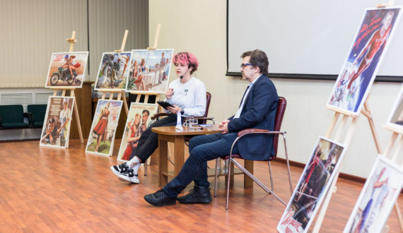 Завершила программу на второй площадке творческая встреча «Плакат как жанр искусства». Участники пообщались с самыми талантливыми авторами научных комиксов и с художником-иллюстратором Валерием Барыкиным. Валерий знаменит своими работами в жанре пин-ап. «Во мне боролись два человека: один сразу устремился в будущее, а другой помнил о заслугах, например, своего отца. И я не мог вычеркнуть всё, что было до меня, и принять безоговорочно то, что нас ждало завтра. Вырезал из газеты пин-ап-красавицу и методом коллажа помещал её в советский плакат со слоганом», — рассказал спикер о начале своей творческой карьеры и выборе жанра.