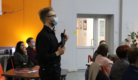 Также сотрудники центра рассказали о творческих мастерских как возможности для детей использовать на практике свои знания. В настоящее время в центре работают керамические, столярные, свечные мастерские, а также мастерские по мыловарению, растениеводству и ткачеству. «Каждый может заниматься творчеством, нужно лишь немного творить и немного чудить», — завершили выступление Екатерина и Ксения.