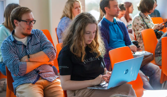 Открытие выставки продолжилось мастер-классом, в рамках которого Мария Никитина поделилась советами по созданию фотографии. Например, слушатели узнали основы работы со светом и цветокоррекции. «При съёмке непрофессиональной модели нужно делать кадры в те моменты, когда человек не позирует, а делает то же, что и в повседневной жизни», — посоветовала фотограф.