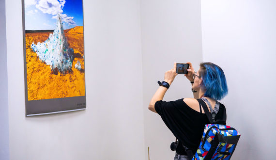 Вечером в рамках фестиваля прошло открытие ART&Science выставки фотохудожника Марии Никитиной из Санкт-Петербурга, известной серией работ «ПластМасса». В основе каждой работы лежит узнаваемая картина, переосмысленная через проблему загрязнения окружающей среды. Например, по мотивам картины Рене Магритта, на которой лица целующейся пары закрыты белой тканью, Мария сделала фотографию, где на головы возлюбленных надеты полиэтиленовые пакеты. На всех работах присутствует пластик: стаканчик для кофе, ватная палочка, пакет. Таким образом фотограф ставит перед зрителями этический вопрос, точно ли мы не можем обойтись без этого мусора.