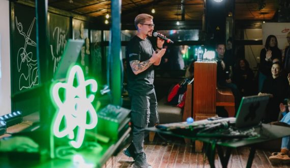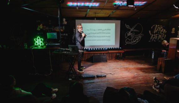 Завершился первый день фестиваля премьерой научно-музыкального шоу «Квадрат эволюции: мифы» в пространстве YUSHIN BROTHERS. Здесь историк из Уральского федерального университета Антон Кочнев разобрал популярные мифы об истории России, а скрипач и композитор Никита Дёмин – мифы из мира музыки. Под звуки электроскрипки научный и музыкальный сторителлинги сплелись друг с другом подобно двойной спирали ДНК.