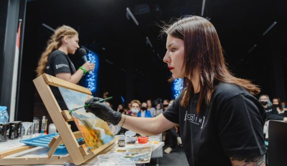 Во время лекции художница Любовь Чельтёмова на глазах у зрителей писала настоящий авторский шедевр с изображением осенней природы Красноярского края. Художница использовала современные синтезированные пигменты, которые изготовила сама – например, жёлтый оттенок создан из отфильтрованного раствора соды и калия, а основа – с помощью масла из сложных и ненасыщенных кислот – олеиновой или линоленовой.