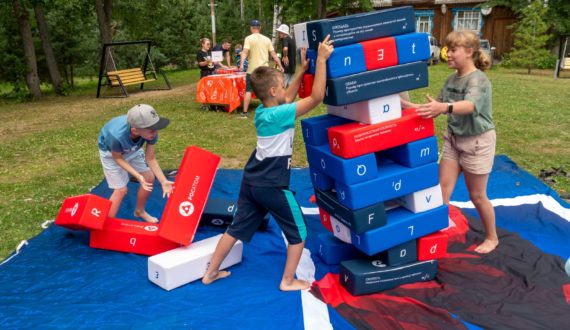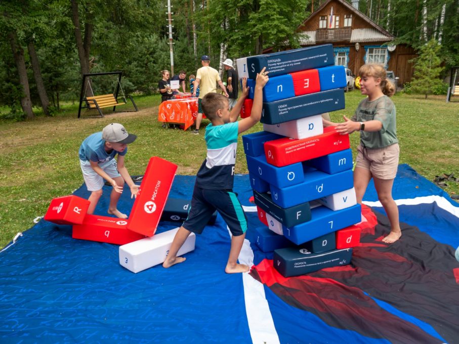 Программа началась с занимательных научных игр на свежем воздухе. Участники знакомились друг с другом, разбивались на команды, соревновались в разгадывании головоломок и выполнении инженерных заданий, а также сборе масштабного пазла в виде атома. Для детей из атомных семей многие задачи были несложными, так как они знают многое об устройстве атомного реактора, ледоколах и даже плавучих станциях.
