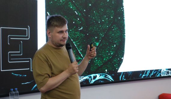 В начале встречи Сергей Сороко, младший научный сотрудник Центра фотоники ННГУ, выступил перед гостями центра с лекцией на тему «Зелёные человечки или путеводитель по флуоресцентному анализу».