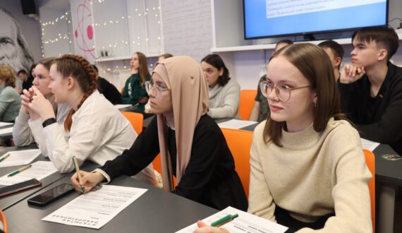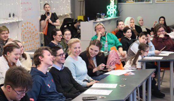 Чтобы принять участие в «Открытой лабораторной», в видеозале центра собрались желающие всех возрастов – и школьники, и студенты, и взрослые. Ведущая «Лабы» — доктор физико-математических наук Ольга Канунникова — выбрала для участников «ИЦАЭ OPEN» самые интересные с её точки зрения вопросы, связанные с научными исследованиями и открытиями. По эмоциям участников было видно, что ответ о происхождении слова «вакцина» от домашней коровы стал для многих неожиданным, а вот с географическими рекордами почти все справились на «отлично».