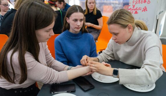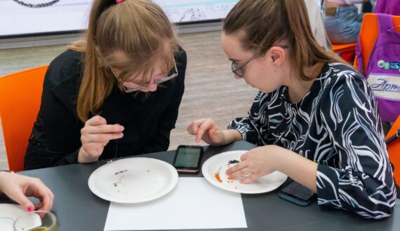 Начался вечер с мастер-класса по изготовлению браслета с использованием азбуки Морзе. Памятное слово или даже цитата — все желающие смогли зашифровать что-то личное и унести такой сувенир с собой.