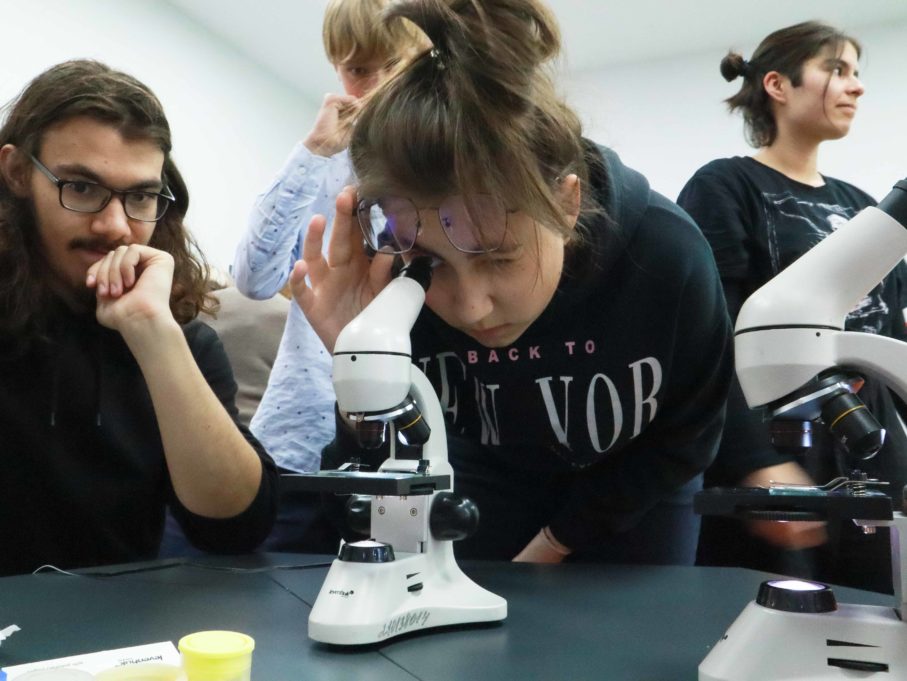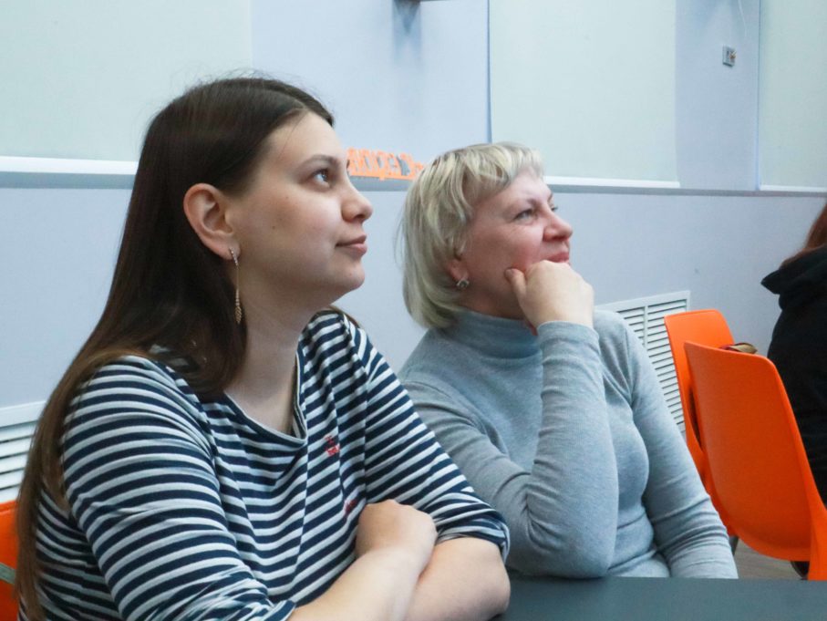 Открытый четверг начался с мастер-класса. Педагог — организатор Марина Минякова, методист Наталья Пахалина и педагог дополнительного образования Екатерина Номеровченко провели интерактивное занятие «Удивительный мир под микроскопом». Его участники познакомились с микроскопом, рассмотрели удивительный мир бактерий и узнали тайны окружающего мира.