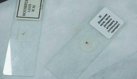 Гости инфоцентра рассмотрели также крыло пчелы, перо птицы, муравья, лист алоэ, плавник рыбы, срез человеческого кишечника, красный песок и много других микропрепаратов.