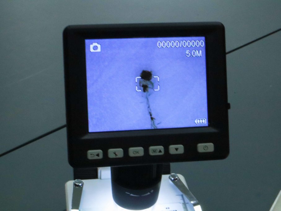 На мастер-классе использовались цифровые и оптические микроскопы. Участники рассмотрели образцы пищевой соды, она более мелкая, и увидели, что это кристаллы разного размера и формы. Они выглядят похожим на обычную соль крупного помола, с учётом того, что размер кристалла — несколько сотых долей миллиметра.