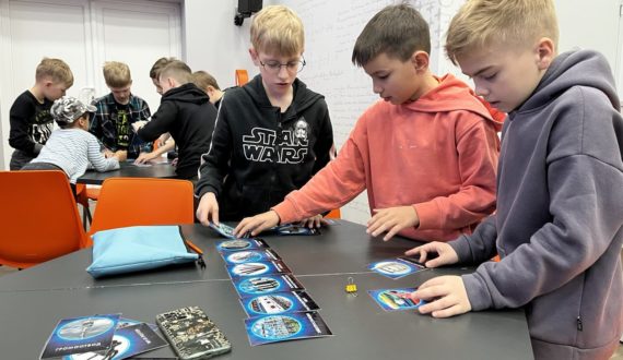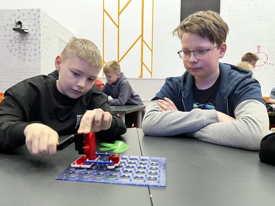 С помощью конструктора «Знаток. Альтернативная энергия» участники занятия собрали макет электростанции и выработали энергию, а также узнали, что меньше всего электроэнергии потребляют зарядные устройства, а больше всего – электрочайники, микроволновки, стиральные машины, холодильники.
