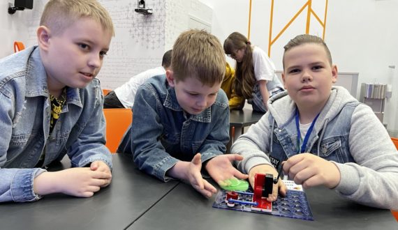 Более ста юных абитуриентов «ЮЗГУ Юниор» в возрасте 9-11 лет на интерактивном занятии «Где рождается электроэнергия?» узнали, какой путь от электростанции до розетки проделывает электричество, по какому принципу работает большинство электростанций и какие виды источников энергии существуют. А также они познакомились с интерактивными экспонатами: «Атомный синтезатор», «Макет атомной электростанции», «Счётчик Гейгера».