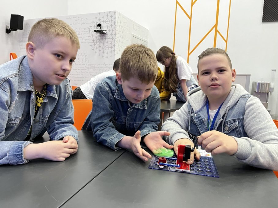 Команда ИЦАЭ Курска продолжает знакомить школьников города с интерактивным занятием «Где рождается электроэнергия». Любители науки из Детского университета и Технопарка «ЮЗГУ Юниор» проложили путь электрического тока от электростанции до розетки, научились превращать механическую энергию вращения в электрический ток.