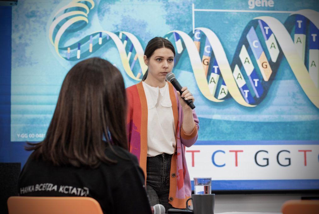 В завершение «Биодня» состоялся Public Talk «Мифы о генной инженерии». Опасны ли генно-модифицированные продукты, для чего нужны генетические исследования и на что способна генная инженерия, рассказала Татьяна Мараховская, руководитель направления реализации научных проектов, образования и просвещения медицинского холдинга «CL Medical Group».