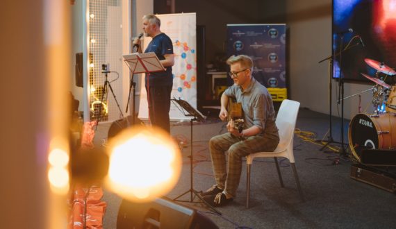 Также участники вечера смогли услышать медицинские песни в исполнении военврача. Аккомпанировал Игорь Носов из оркестра AVOCADO JAM.