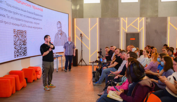 Мероприятие началось с игры «Угадай диагноз», где каждый участник мог почувствовать себя доктором и попробовать углубиться в медицинскую терминологию. Так, например, оказалось, что под словом «бруксизм» скрывается непроизвольное скрежетание зубами во сне, а спириллёз – это инфекционное заболевание, которое возникает из-за укусов животных (в особенности, крыс). По результатам игры были выявлены 4 победителя, которые были награждены фирменной игрой ИЦАЭ «Чепухатом», суть которой также заключается в разгадке обозначения профессиональных терминов из разных областей.