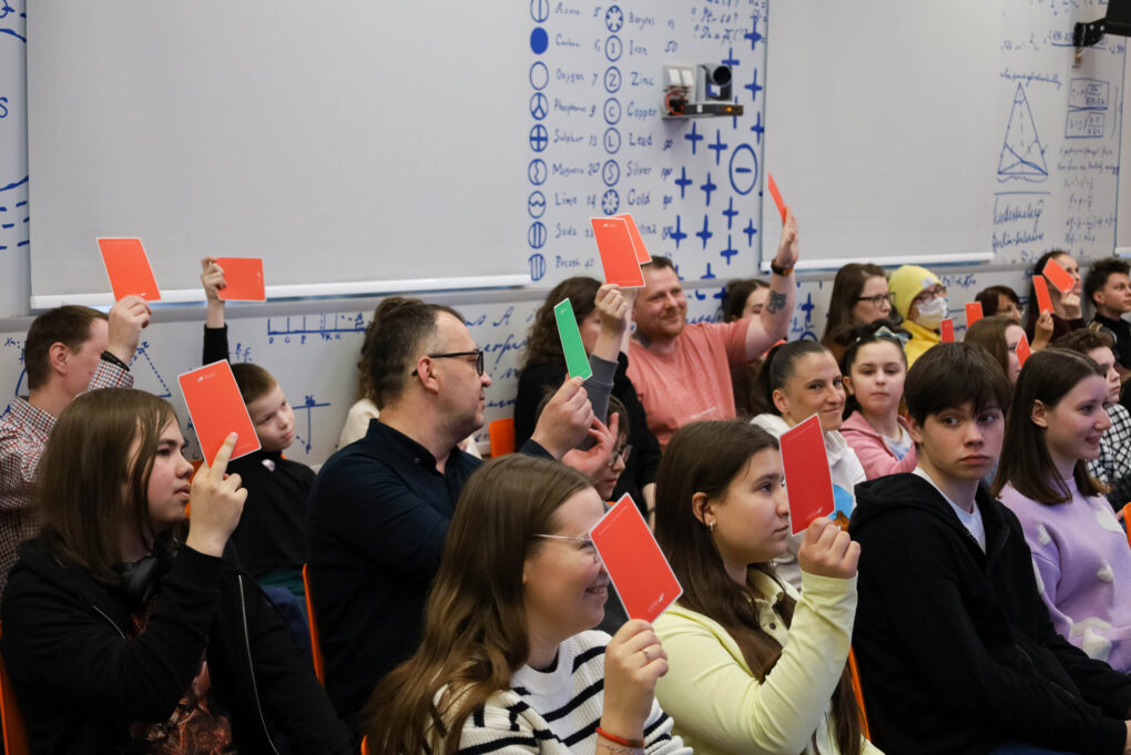 Между лекциями два города сразились в интерактивном квизе. Гостей ждали вопросы о научных фактах и распространённых заблуждениях, связанных со светом, цветом и окружающим миром. Отвечая на вопросы, участники телемоста узнали, что Вселенная не чёрная, а имеет цвет «космическое латте», что коричневый цвет разрезанного яблока не связан с железом, а белых медведей сложно обнаружить тепловизором.