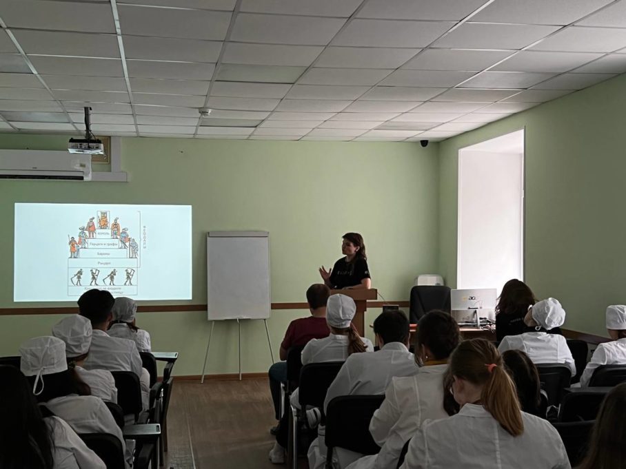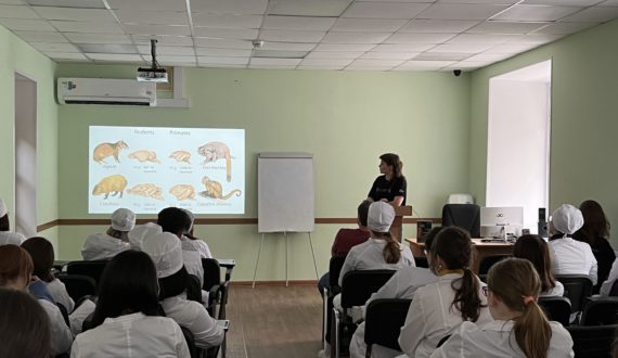 Старшеклассники-лицеисты и студенты медицинского колледжа разобрали строение мозга и его связь с социальной жизнью на лекции Елены Судариковой «Мозг человека и других приматов». Лектор развенчала миф о том, что важен размер мозга. Гораздо важнее количество нейронов в новой коре больших полушарий. Развитие коры связано с количеством социальных связей в группе приматов. Количество максимально возможных знакомств, так называемое число Данбара, для людей достигает 150-230 связей, тогда как у обезьян это число – до 80 особей.