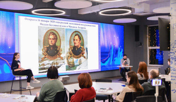 Что такое «северный текст» и почему нас пугает «человек, пришедший с холода»? Какие принципиальные различия есть между Северным и Южным полюсами? С какими мифами о Севере стоит попрощаться? Отправиться в виртуальное путешествие по Арктике и Антарктике смогли 13 декабря гости Информационных центров по атомной энергии (ИЦАЭ) Челябинска и Обнинска на телемосте «Байки полярной ночи».