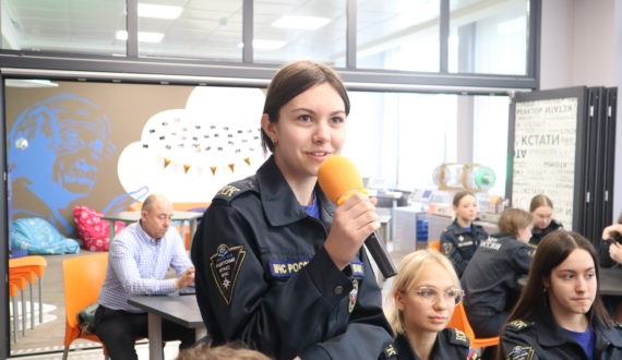 Сразу после рассказа о ледоколе «Ленин» старший помощник капитана атомного ледокола «50 лет Победы» Диана Киджи, объяснила, кто работает на ледоколах, как организована служба и с какими трудностями сталкивается экипаж.