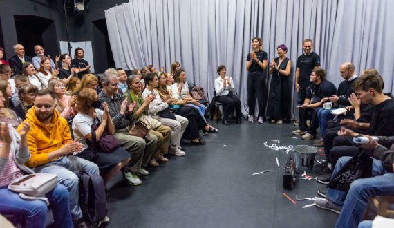 Завершила фестиваль читка пьесы – Science drama «БК ИМ. Л-КОГО» по повести Виктора Пелевина «Затворник и Шестипалый». В сатирической притче рассказано о птицах на комбинате, где однажды сородичи изгоняют цыплёнка Шестипалого, который после этого знакомится с умным цыплёнком Затворником и становится его учеником.