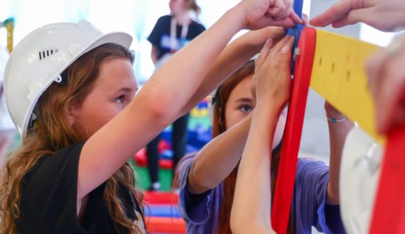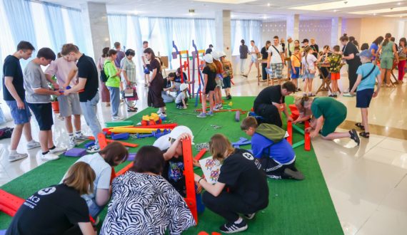 Программа фестиваля включала полюбившиеся всем жителям Курчатова инженерные игры, интеллектуальные конкурсы, эффектные фотозоны. Будущие проектировщики вместе с родителями собирали гигантскую машину Голдберга и, подобно древнеегипетским строителям пирамид, решали задачу по поднятию и перемещению тяжестей с помощью системы полиспастов.