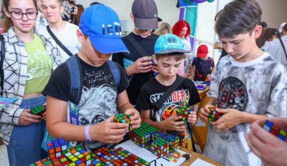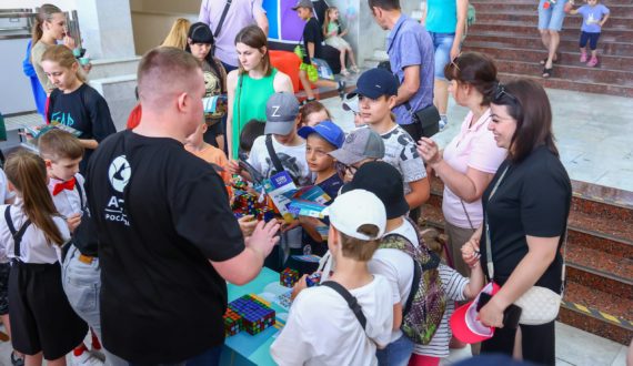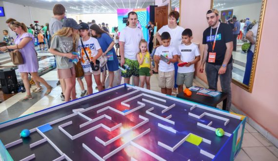 Впервые курчатовцы смогли проверить скорость своей реакции на локации «Реактор», а также принять участие в гонках на робошарах, сыграть на огромном напольном пианино и собрать панно из 1225 кубиков Рубика, картину для которого создала нейросеть.