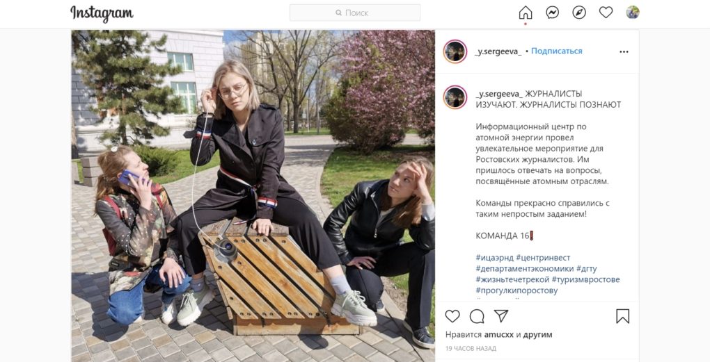 Интеллектуальными сыщиками, фотографами и копирайтерами в одном лице почувствовали себя ростовские студенты и школьники 24 апреля на городском молодёжном фото-квесте «Ростов-Город», одним из организаторов которого выступил Информационный центр по атомной энергии (ИЦАЭ) Ростова-на-Дону.