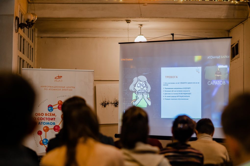 Вечер открыл рассказ о том, что такое страхи и как они появляются. Эти и другие вопросы разобрала Ирина Нечаева, психолог и преподаватель Саратовского национального исследовательского государственного университета имени Н.Г. Чернышевского. По словам спикера, как бы нам не хотелось жить без страхов — они нам очень нужны, ведь переводят наш организм в состояние активного реагирования.