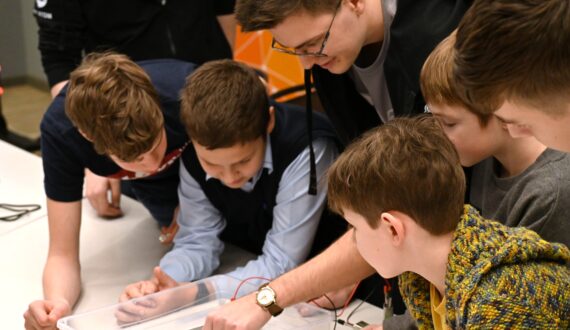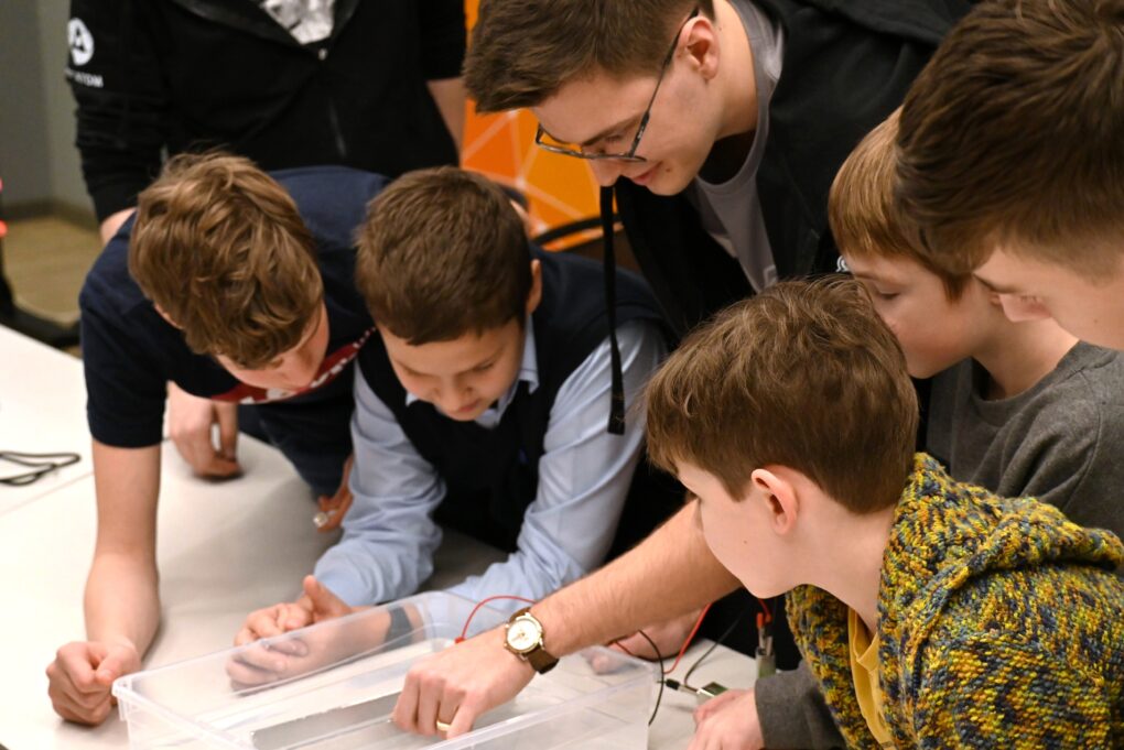 — мастер-класс «Двигатель будущего» от Сообщества студентов Росатома. В ходе мастер-класса участники узнали о магнитогидродинамическом эффекте, научились управлять потоками воды и создали макет магнитогидродинамического движителя;
