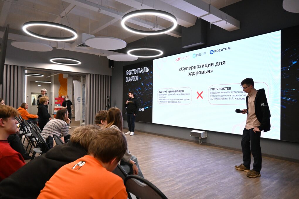 Следом прошло научно-популярное ток-шоу «Суперпозиция для здоровья». В ходе ток-шоу зрители смогли разобраться в том, как взаимосвязаны квантовые технологии, медицина и современные радиофармпрепараты. Экспертами выступили Глеб Локтев – ведущий технолог Научно-исследовательского физико-химического института имени Л. Я. Карпова и Дмитрий Чермошенцев – руководитель группы в «Росатом Квантовые технологии», заместитель руководителя научной группы Российского квантового центра.