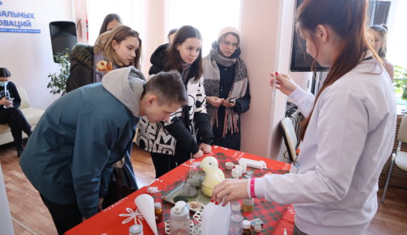 В фонде «Ульяновск – культурная столица» для школьников подготовили химические опыты, восстановления и окисления. При поджигании дихромата аммония – порошка оранжевого цвета – получается мини-вулкан, а порошок впоследствии меняет цвет на серо-зелёный. Участники увидели, как при смешивании в колбе перекиси водорода, воды и оксида марганца выделяется кислород. Подожжённую лучину опускали в колбу с водой и перекисью, и после добавления оксида марганца пламя становилось ярче. Каждая команда квеста сделала на площадке пять химических экспериментов. Заданием для игроков стало определение вещества в баночках – мука, сода, соли аммония, лимонная кислота.