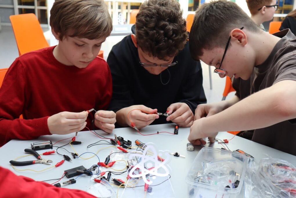 В рамках проекта ученики минской школы №9 погрузились в увлекательный мир радио и стали участниками мастер-класса «Электричество и радио в истории и современной жизни». Леонид Дедион, преподаватель, член президиума Федерации радиолюбителей и радиоспортсменов Республики Беларусь и Вера Клинцевич, ведущий специалист отдела инновационного развития Минского городского технопарка погрузили участников мероприятия в мир электроники и радиотехники.
