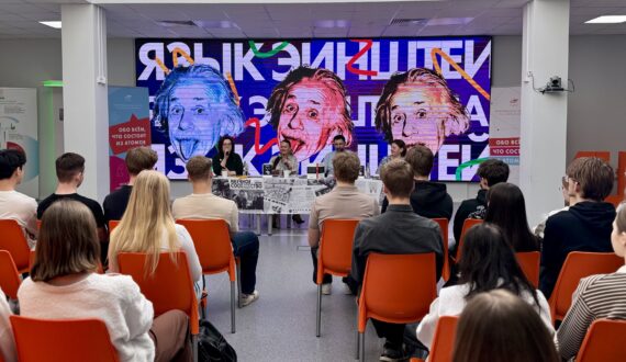 «Язык Эйнштейна» — это формат интеллектуального досуга для тех, кто хочет быть в курсе актуальных научных новостей. Спикеры доступно, популярно и кратко рассказывают о том, что произошло в мире науки, объясняют и комментируют научные новости и их значение.