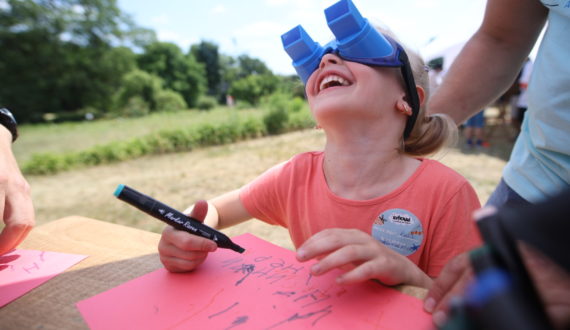 На локации «Мысли как инженер» собрались любители интеллектуального досуга и азарта. Все желающие попробовали, надев очки, переворачивающие изображение, написать самое простое слово или начертить любую геометрическую фигуру. Кроме того, всех гостей площадки «Атом team – давай к нам» ждали мини-викторины, посвящённые атомным технологиям.