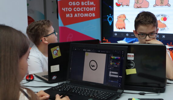Анна Тарасюк, педагог дополнительного образования IT-академии «RED Education» провела для участников проекта занятия по цифровому рисованию. Ребята придумали концепцию собственного стикерпака и отрисовали стикеры с помощью графических планшетов.