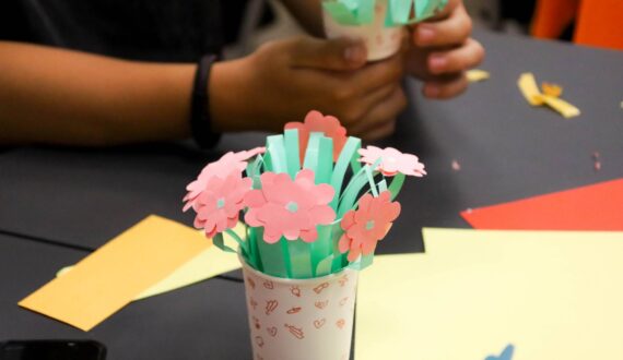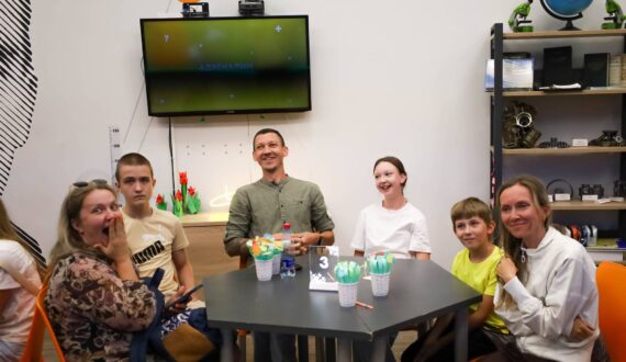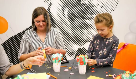Открыл программу «ИЦАЭ OPEN» семейный мастер-класс. Участники сделали из бумаги нежные букеты цветов, которые поставили в «горшочки» – брендированные стаканчики ИЦАЭ. Во время создания поделки гости узнали, как радиация помогает выводить новые сорта растений – для создания растений, устойчивых к болезням, морозам или засухе, повышения урожайности или появления новых расцветок бутонов. Для такой мутационной селекции может использоваться ультрафиолетовое, рентгеновское и гамма-излучение, облучение α- и β-частицами или быстрыми нейтронами.