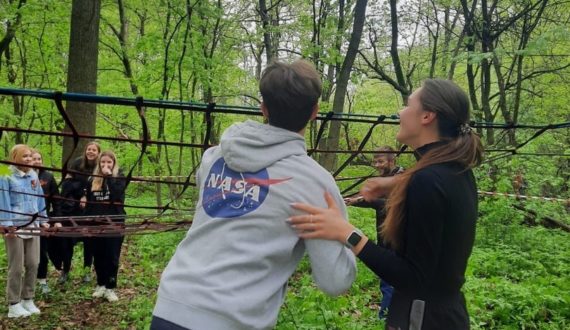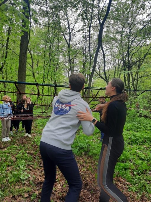 Волонтеры от ИЦАЭ Курска также помогали в организации туристкой тропы на офлайн-этапе, проходили с командами маршрут, выполняя задания: переправа по кочкам, параллельные веревки, маятник, дартс, паутина.