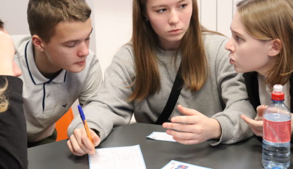 153 команды учеников школ и колледжей из 19 городов присутствия сети Информационных центров по атомной энергии (ИЦАЭ) 25 ноября сразились в дополнительной игре интеллектуального турнира «BrainShaker. Юниоры», которая прошла вне зачёта. Ведущей игры была участница проекта «Ледокол знаний-2022» Полина Бринза.