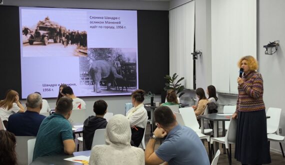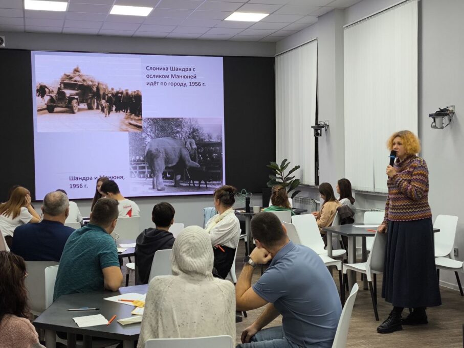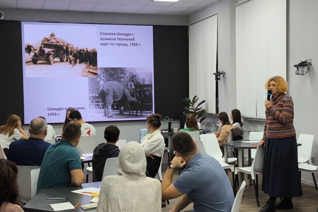 Лекционная часть встречи была посвящена истории зоопарка через судьбы его обитателей. Ольга Левкова, методист отдела «Просвещение» Калининградского зоопарка, рассказала о слонихе Шандре, прибывшей в Калининград в середине XX века, и её дочери Преголе — первой слонихе, родившейся в зоопарке и ставшей одним из его символов. Рассказ дополнили реальные артефакты и обсуждение практических вопросов содержания крупных животных: особенностей ухода, значения социальной среды для слонов и того, как специалисты обеспечивают их благополучие. Завершилась встреча живым обсуждением, в ходе которого гости активно задавали вопросы и делились впечатлениями.