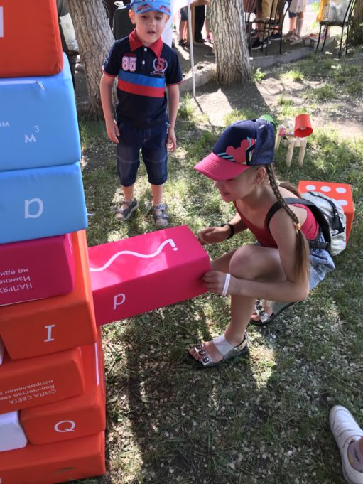 Для всех детей, несмотря на разницу в возрасте и интересах, нашлись занятия по душе. «Дженга» привлекла самых маленьких новосибирцев. Строительство башни из мягких блоков велось дружно и активно, без разногласий между игроками. А если сооружение все же рушилось, то новые участники с энтузиазмом приступали к его восстановлению.