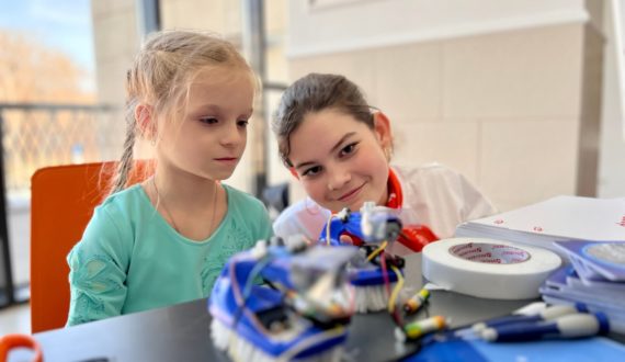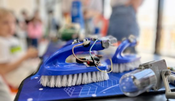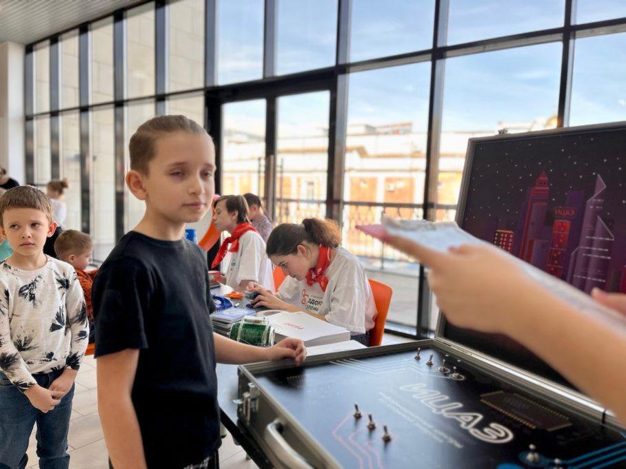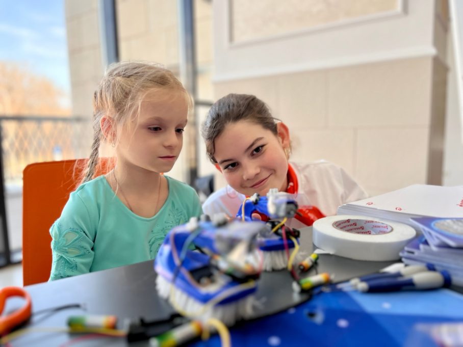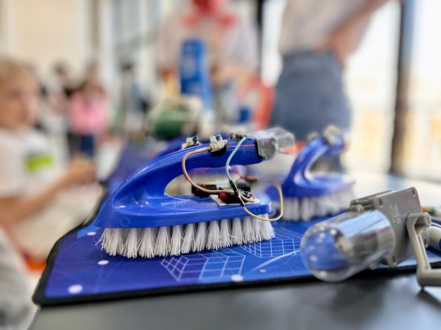 А у самых маленьких посетителей неподдельную радость вызвали занятия по сборке робота-щётки и робота-банки. Ребята изучили порядок сборки электрической цепи и узнали, что именно приводит в движение этих забавных механических роботов.