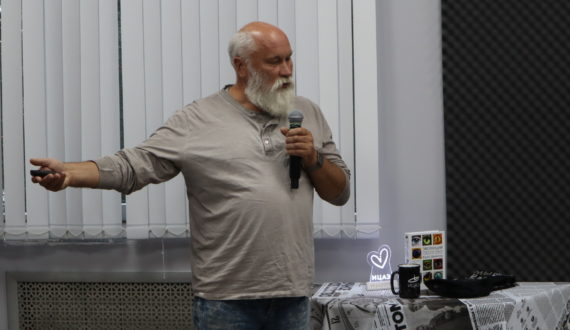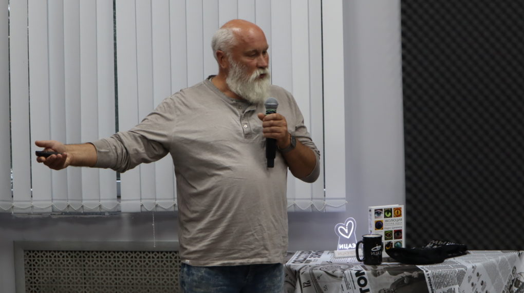 Вечер начался с выступления Андрея Нестерова, старшего научного сотрудника государственного научного центра вирусологии и биотехнологии «ВЕКТОР» Роспотребнадзора г. Новосибирска, который на примере фильма «Я – легенда» объяснил, как деятельность человека и развитие современной биотехнологии могут влиять на эволюцию вирусов.