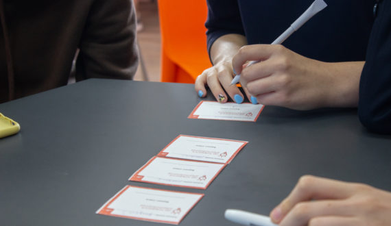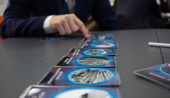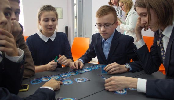 В завершение занятия школьники узнали, что источником энергии на АЭС является цепная реакция деления ядер урана-235. Чтобы понять, как это происходит, участники инициировали «цепную реакцию» среди его участников.