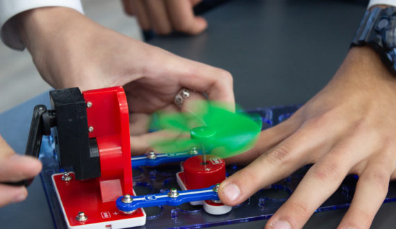 «Электрический ток вырабатывается на электростанции. А дальше его нужно передать на большое расстояние. Чтобы уменьшить потери электроэнергии при этом, напряжение электрического тока увеличивается при помощи повышающего трансформатора. После этого по высоковольтным линиям электропередачи ток проходит в понижающий трансформатор. Это нужно для того, чтобы довести электроэнергию до конечных потребителей», – объяснил ребятам Илья Житков.