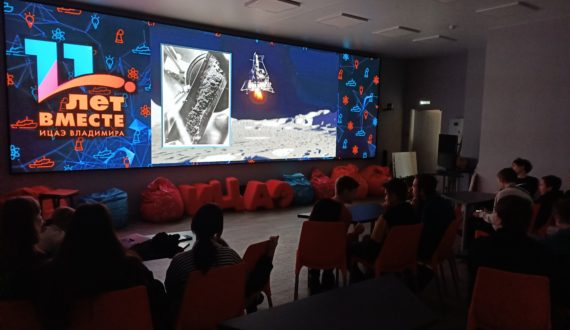 Первые посетители программы — ученики Вяткинской СОШ — начали визит с просмотра фильма «Космическая история России», предоставленного ИЦАЭ Ассоциацией планетариев России. Зрители узнали о начале космической эры человечества — запуске первого спутника на советской космической ракете «Р-7», а также о других достижениях СССР в реализации космической программы — успешном полёте Белки и Стрелки, первом в мире космонавте Юрии Гагарине, первом космонавте, побывавшем в открытом космосе Алексее Леонове, лунных космических аппаратах и луноходах, миссиях на Венеру и Марс и других значимых этапах, включая современные космические проекты.
