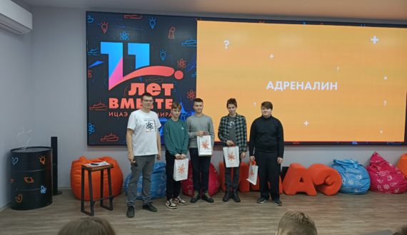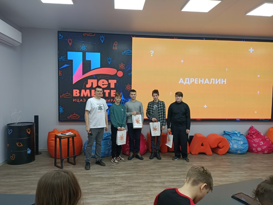 Затем школьники сыграли в «Адреналин» — командную азартную игру, в которой участники делают ставки на знания. У каждой команды перед началом игры есть на счету 100 баллов, и после объявления темы вопроса участники делают ставку в любом размере. В случае правильного ответа ставка прибавляется к счёту, в случае неправильного — вычитается.