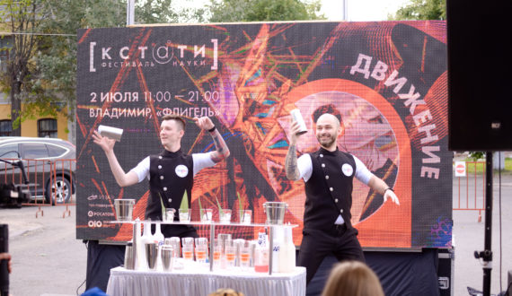 Вечерняя программа открылась химическим шоу по созданию коктейлей, после чего зрители смогли попробовать молекулярные коктейли.