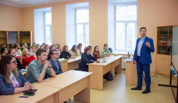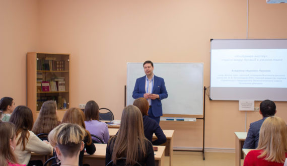 Студенты-филологи Владимирского государственного университета 28 апреля на лекции Владимира Пахомова «” Изображая жертву”: страсти вокруг буквы Ё в русском языке» узнали о том, как появился звук без буквы, сколько времени заняла реформа орфографии в России, сколько их было и какой справочник по правилам русского языка считается эталонным в наше время.
