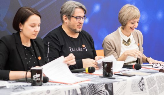 Модератором обновлённого «Языка Эйнштейна 2.0» в Екатеринбурге выступила Екатерина Нечаева, главный редактор компании «DeVision». В Челябинске – член Союза журналистов России, победитель Лиги чемпионов игры «Мозгобойня» Рифат Абдрашитов. Мероприятие состоялось в рамках сетевого проекта ИЦАЭ OPEN.